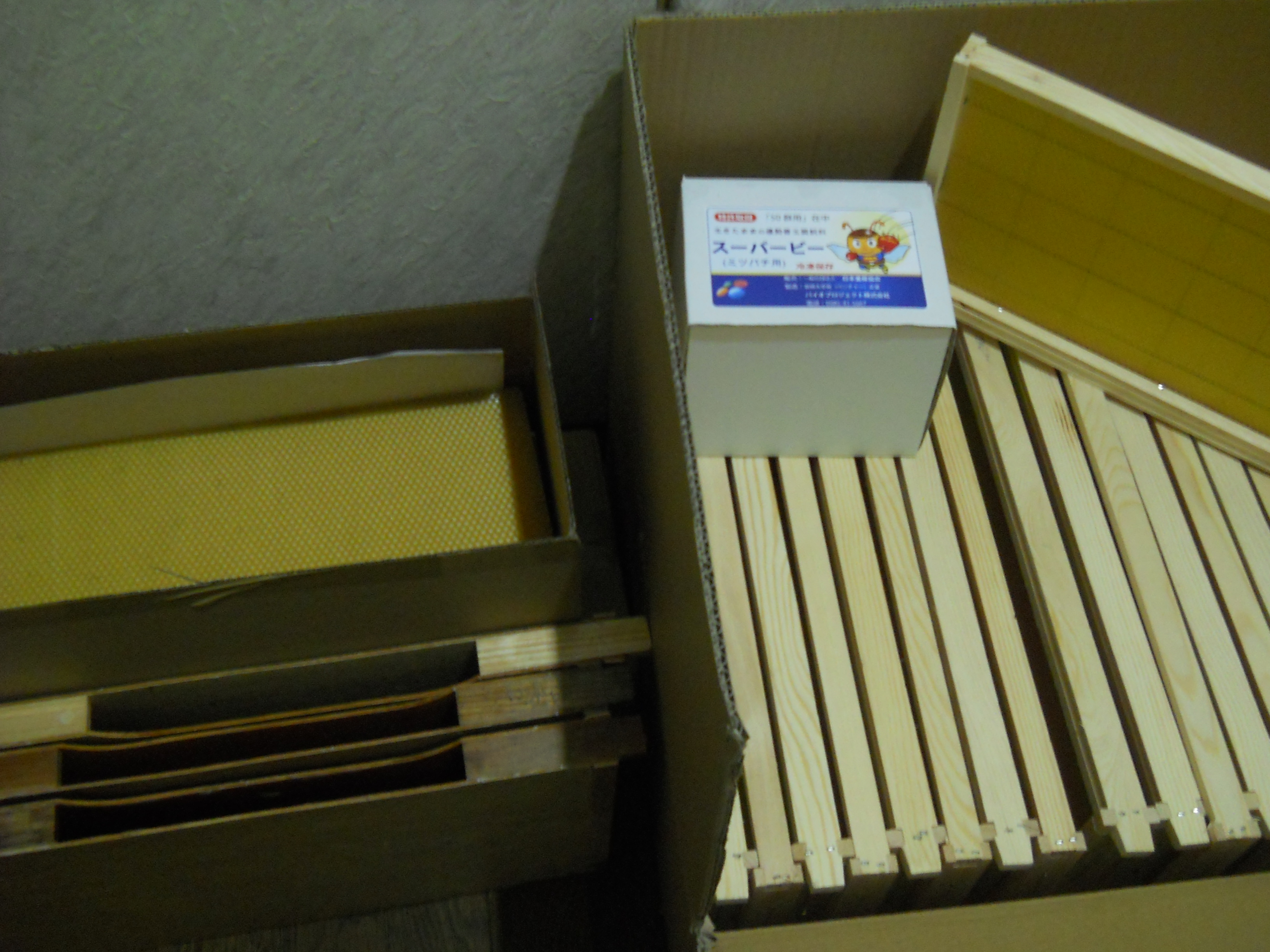 我が家の狭い廊下は、仕入れた新シーズン向けの蜂具に占領されています。車の荷台にも冷凍庫にも昨シーズンの巣板が入っています。今月中に新巣箱3セットも来るでしょう。ハチもニンゲンも忙しくなります!