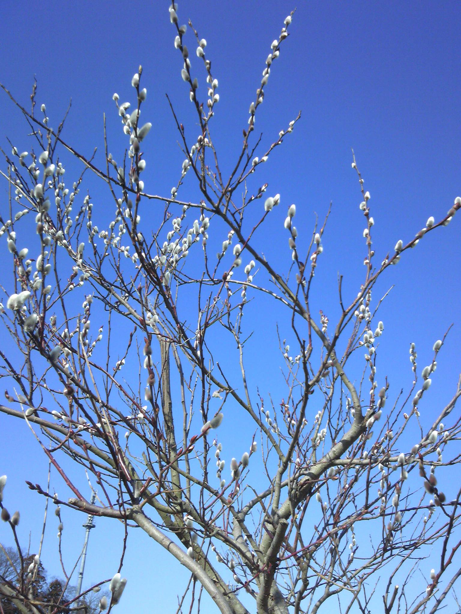 土曜日の朝の散歩で、ネコヤナギのような芽の付いた木を見つけました。きれいだったので、カメラはなかったけどケータイで写真を撮りました。