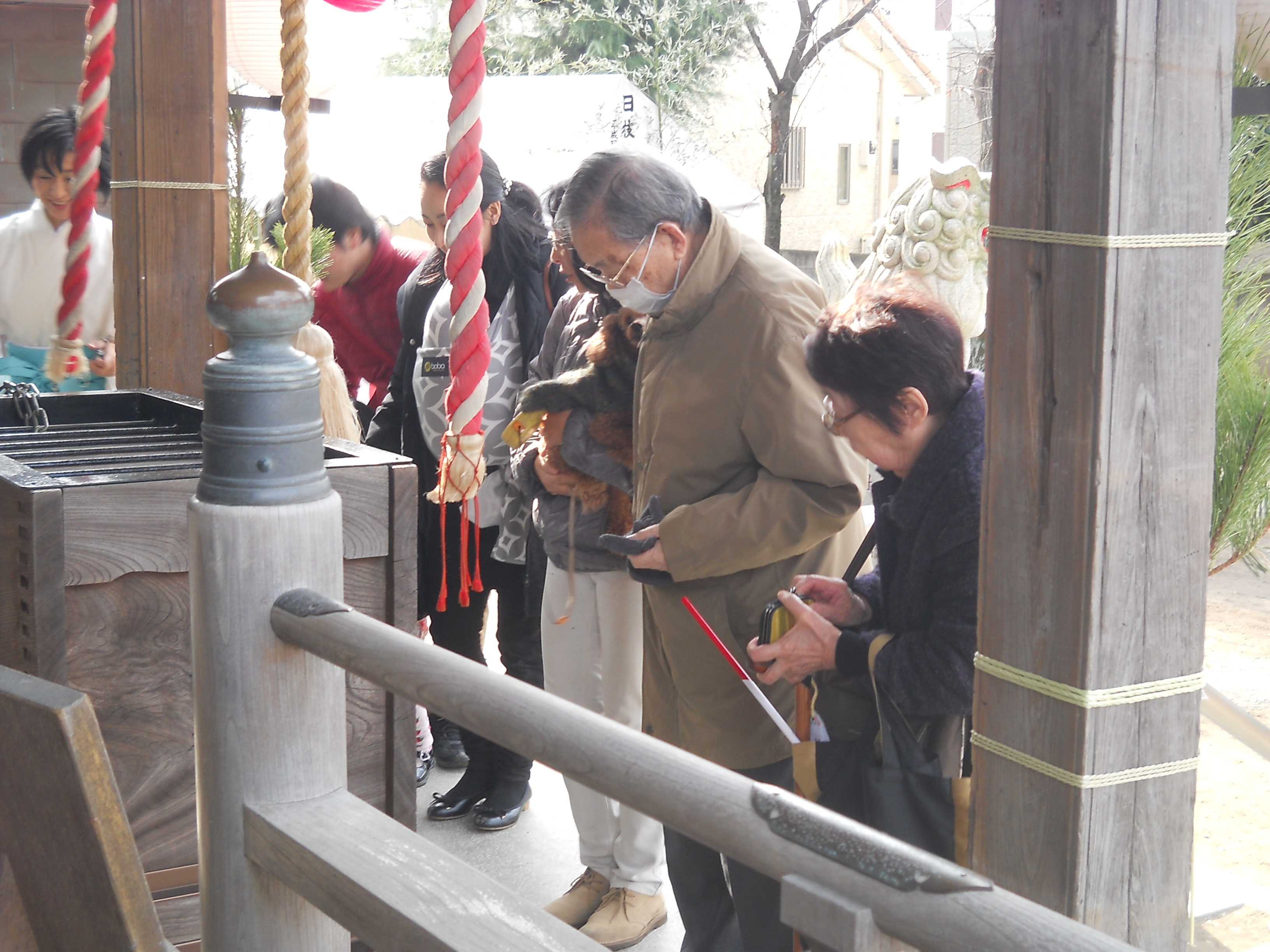 4日にいつもの神社に初詣。今回は犬も行きました。 お賽銭を出そうとしている両親の横に犬を抱えている私がいます。