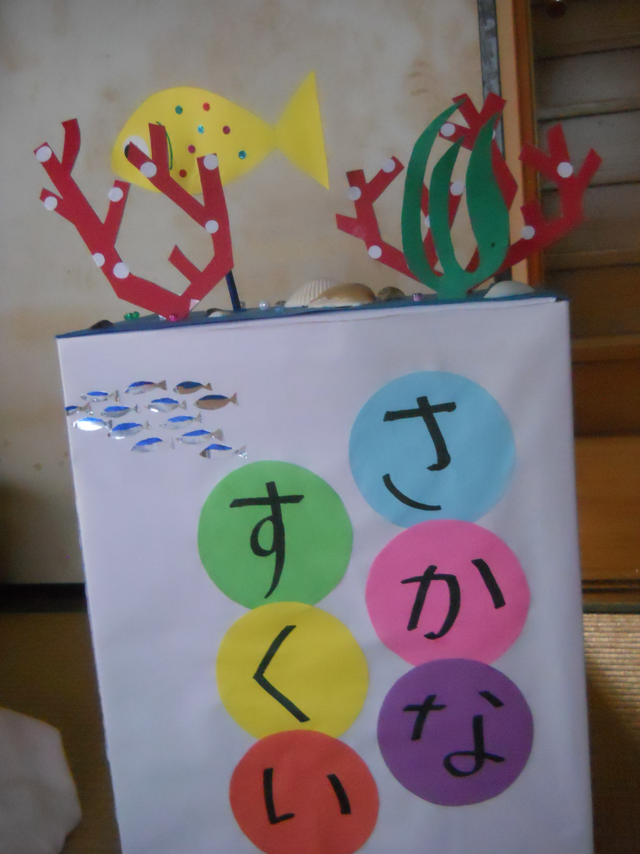 サンゴと魚群は私の作品です。写真をクリックして大きくしてよーく見てね。