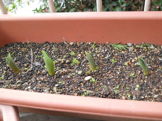 前回と比べると、スイートピーはだいぶ伸びたね。チューリップは分かりにくいけど、葉の先が開いてきています。