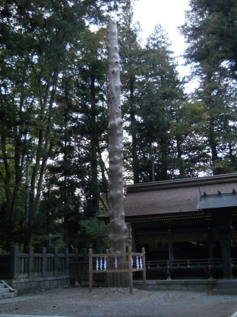 まず宿の近くの秋宮へ。左が一の御柱、右が二の御柱。三と四は後ろにあって、写真は撮れませんでした。パワースポット&パワー柱です。空気が美味しい!