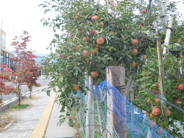 DSCN0293.JPG歩道まではみ出して生っているリンゴ。
