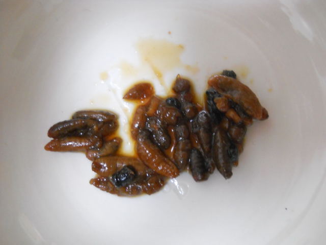羽化寸前が食べごろらしいけど、幼虫っぽかったり、蛹っぽかったり、おや、お前さんはもう蜂だね、ってやつもいます。