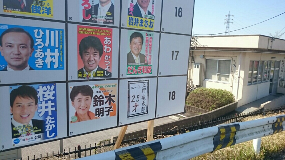 この前の日曜日は統一地方選挙前半戦でしたね。千葉市では県議、市議の選挙がありました。
