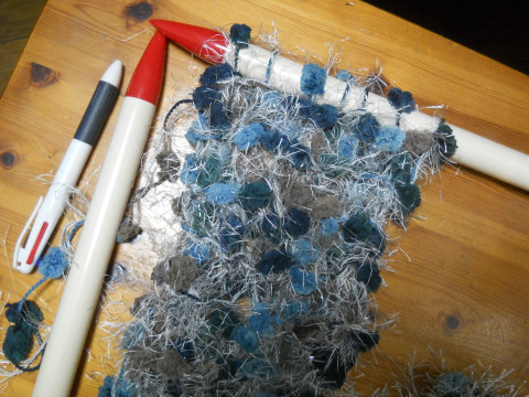 ネットショップで毛糸を買ったとき一玉オマケに入っていた、ダマダマシャラシャラな毛糸でマフラーを編んでみました。極太の編み針で、ひじょーに編みにくかったけど、ちょっとステキなマフラーが出来ました。バザーに出そうと思います。 ダマダマシャラシャラとはなんぞ?と思ったあなた、写真をクリックして大きくして見てね。