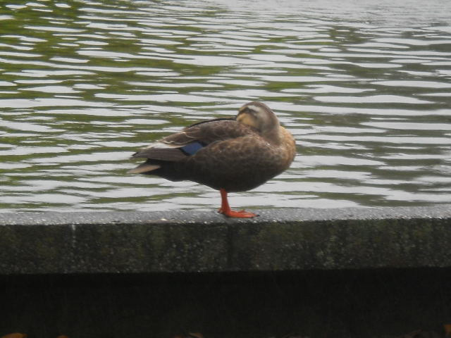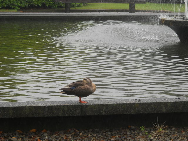 DSCN2044.JPG昨日の雨の中でも、一羽が噴水池の縁で眠っていました。奥さん(ダンナさん?)は見当たらず。