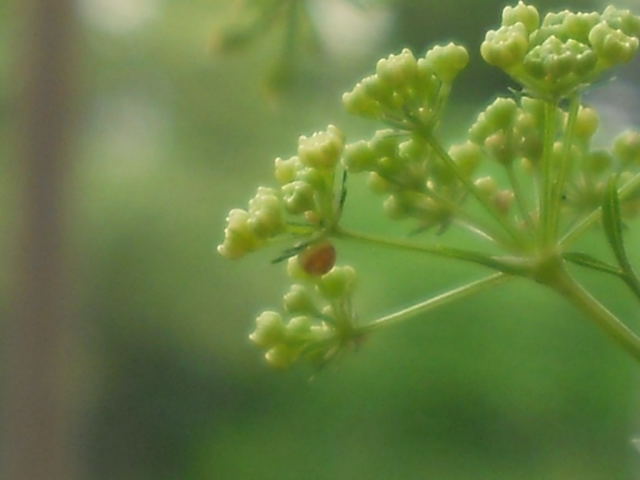 DSCN2049.JPG今朝の様子。この写真の真ん中に、まん丸なキアゲハの卵があります。