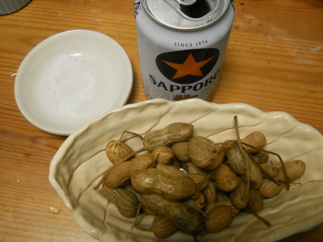 村の収穫祭で掘った落花生を塩茹でしました。炒ったものとは違う美味しさ。甘いです。