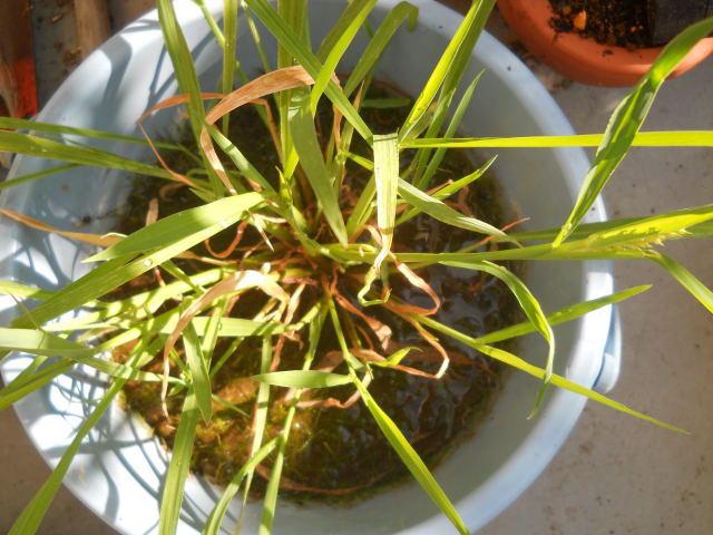 そして、バケツビオトープ。(黒米ではないので、もうバケツ田んぼとは言わない。でもタニシとかいる。)