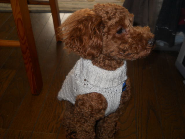 が首に巻いているのは、お台場ビーナスフォートのペットショップで友人が買ってくれたチーフ。
