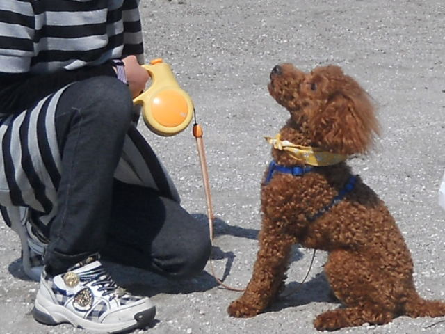 フリスビーを拾ってきたり、アイコンタクトを取って、指示を聞きます。なかなかおりこう。煮干しのためなら何でもいたします!
