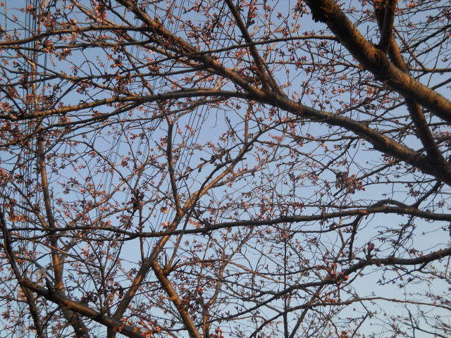 枝をアップにすると、まだまだ蕾ばかり。5~6分咲きなのかも。