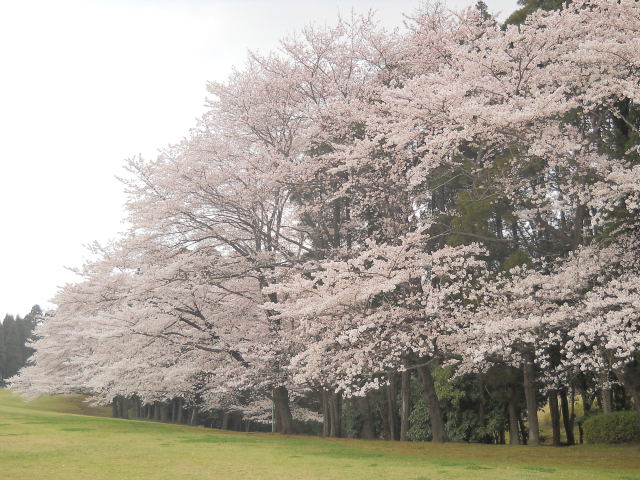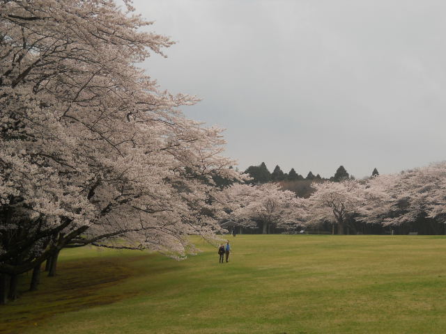 お花見広場のソメイヨシノはほぼ満開。壮観!写真をクリックして大きくして見てね。小雨が降っていたのであまり人はいません。DSCN1124.JPG