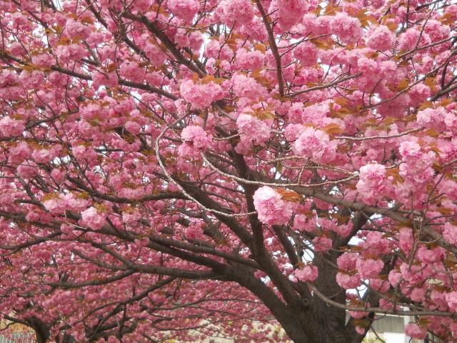 今週のはじめ頃は八重桜が満開でしたね。職場の工場で写真を撮ったので、アップしておきます。