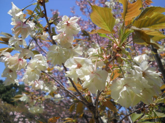 そして、去年から事務所の近くで咲いている若いウコンザクラ。下向きの青ざめた花に次第にピンクのラインが入ってきます。不思議な魅力。DSCN1127.JPG