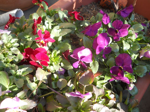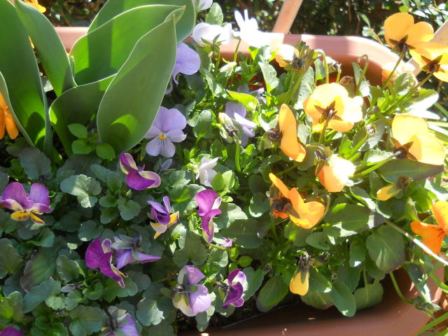 12月に閉店間際のお花屋さんで格安で買ったビオラたちも。