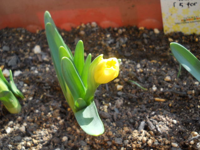 今朝撮ったテンテンちゃん祈念プランターの水仙テタテタです。開化というにはまだちょっと早いけど、今日中に開くでしょう。