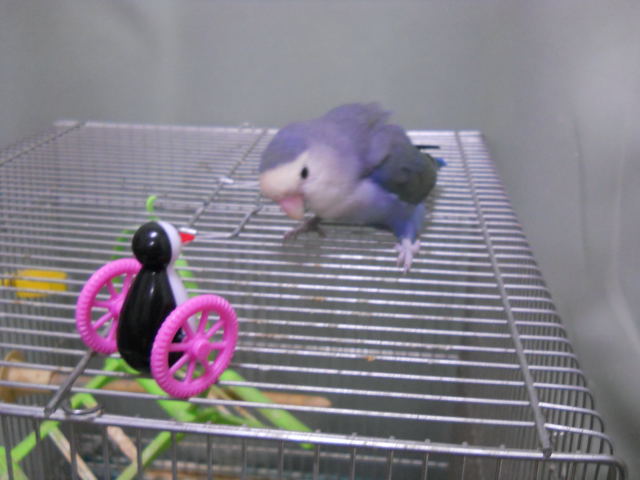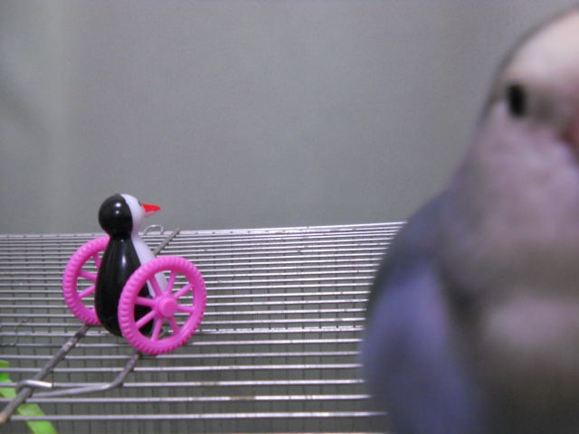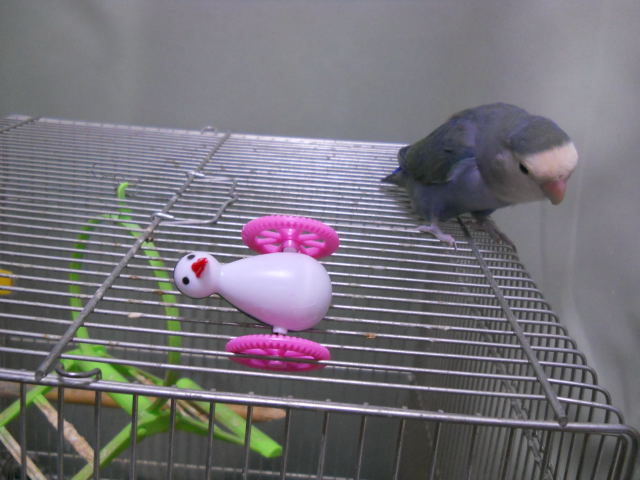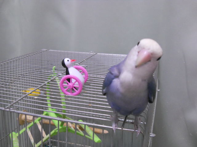 セキセイインコやコザクラインコが「ゴーゴーペンギン」で楽しそうに遊んでいる動画を見たので、ひょんさんにも与えてみたよ。