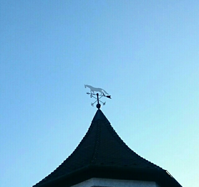 画家が住んでいた市川市中山の住宅街にドイツ風の記念館。風見鶏ならぬ風見馬は魁夷の絵のモチーフの白馬からでしょう。