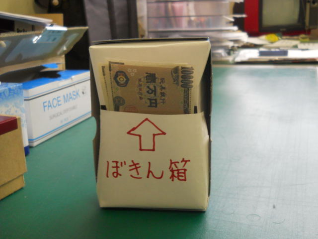 DSCN0441.JPG写真は、震災後、会社の某氏の机の上に突如現れた「ぼきん箱」