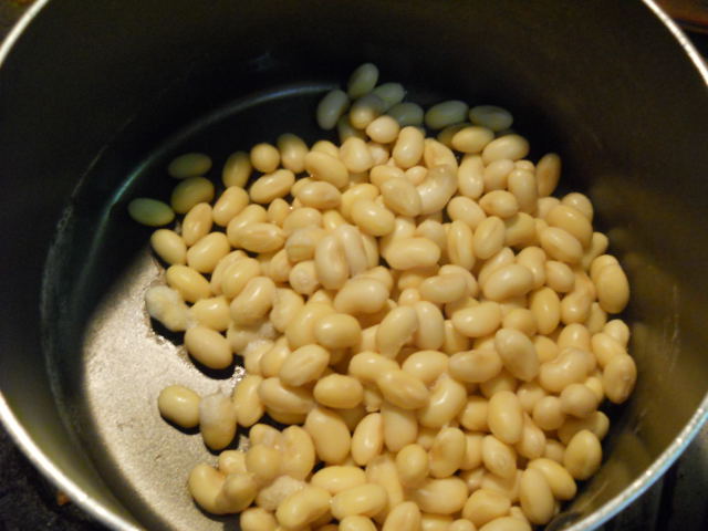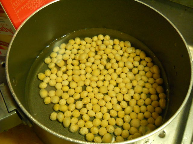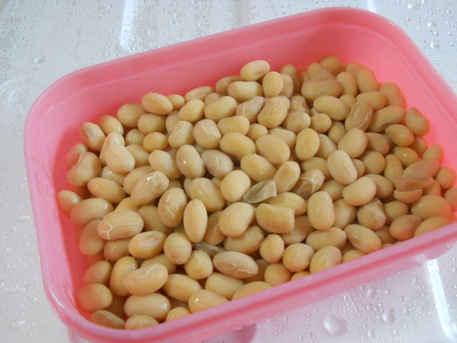 いつものちばコープで大豆を買ってきて、100グラムを一晩水に浸ける。