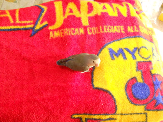 あとは、毛布の上のひょん様を鳥籠に戻し、会社に行く。朝はテンションが高くて籠から出たがる。そして野次鳥なので、忙しくしていると必ず見に来る